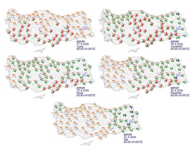 YENİ HAFTADA HAVA NASIL OLACAK?Pazar günü itibarıyla Marmara, Ege ve Batı Akdeniz'in kıyı şeridinde yağışlar etkisini kaybederek yerini parçalı bulutlu ve güneşli bir havaya bırakacak. Ancak İç Anadolu, Karadeniz ve Doğu Anadolu bölgelerinde sağanak yağışların etkisini sürdürmesi bekleniyor.