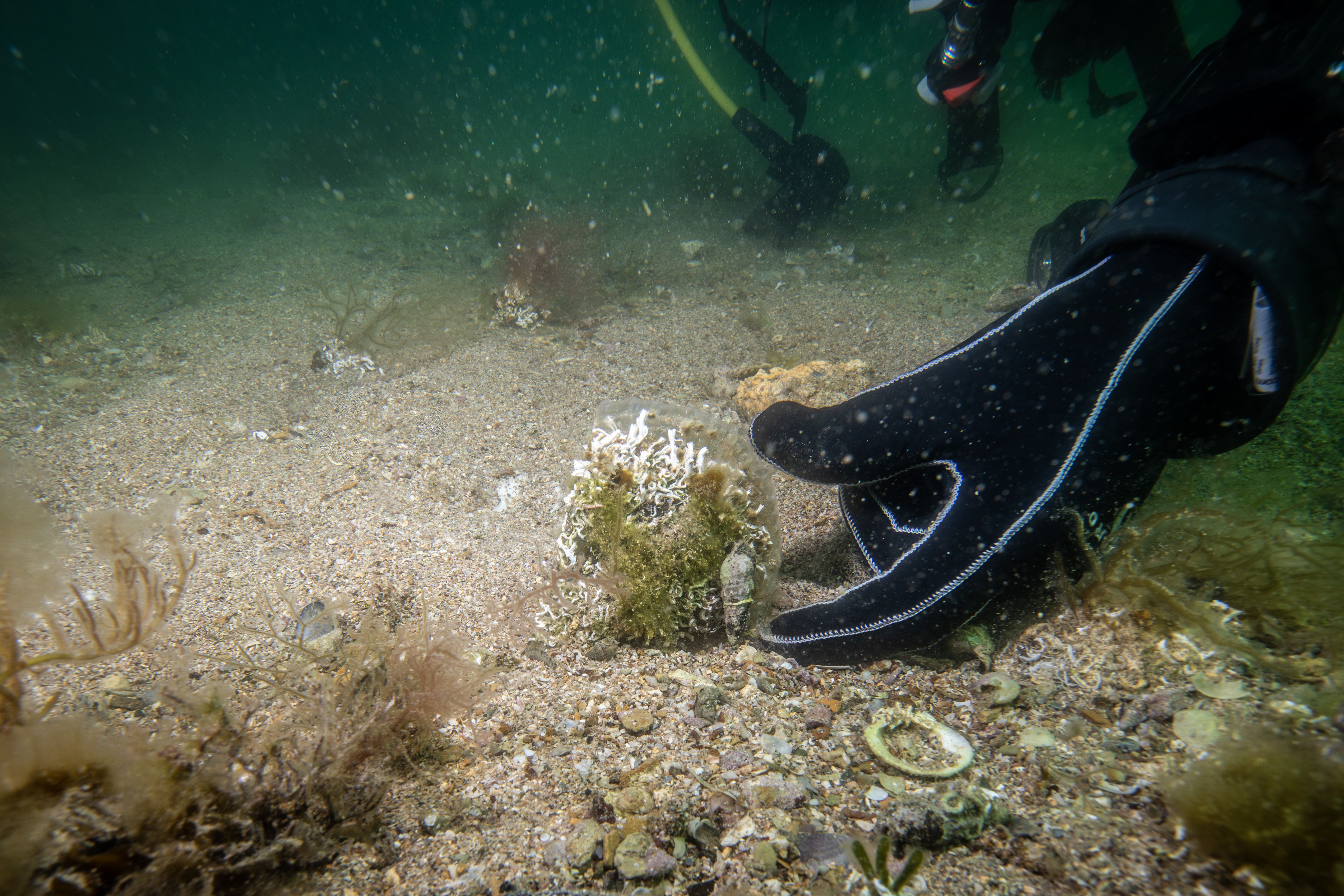 "İSKELENİN HEM SAĞINDA HEM SOLUNDA İKİ FARKLI TÜR DENİZ ÇAYIR ALANI TESPİT ETTİK"Prof. Dr. Sarı, izleme projesi kapsamında fırsat buldukça tanımlı istasyonların dışındaki noktalarda dalışlar yaparak, yeni alanlar belirlemeye çalıştıklarına dikkati çekerek şu ifadeleri kullandı:
