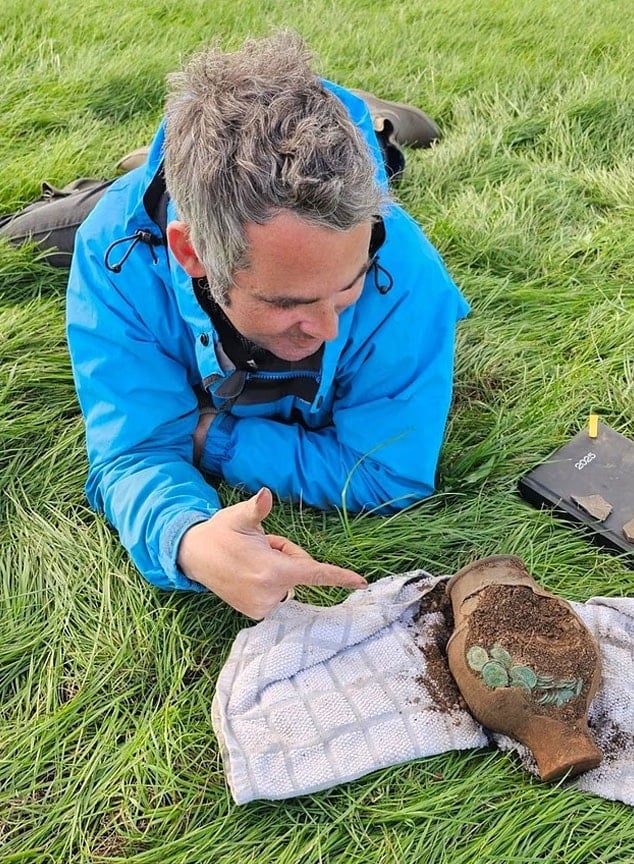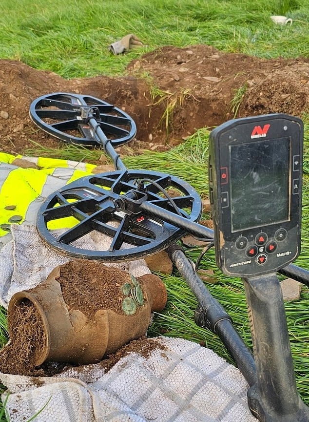 Toprağın yaklaşık 30 santimetre altına gömülmüş iki kil çömlek içinde sikkeler bulundu. Uzmanların yönlendirmesiyle kazı işlemi 6 saat sürdü. Moss, bulduğu sikkeleri hemen yerel makamlara bildirdi ve Cardiff Ulusal Müzesi'ne teslim etmek üzere arabasıyla 4 saatlik bir yolculuğa çıktı.