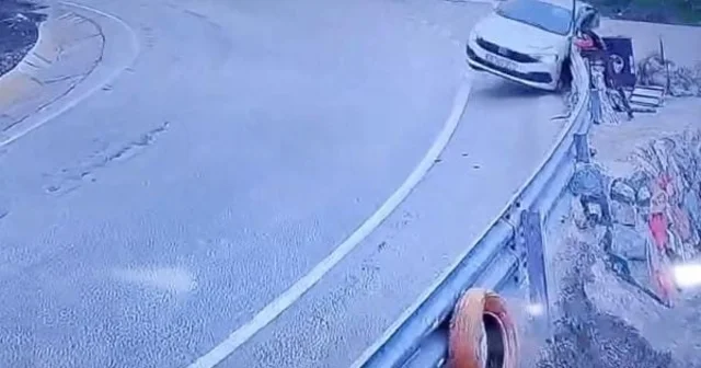Uludağ yolundan şehir merkezine seyreden bir otomobil virajı alamayarak bariyerlere çarptı. O anlar güvenlik kamerasına yansıdı.