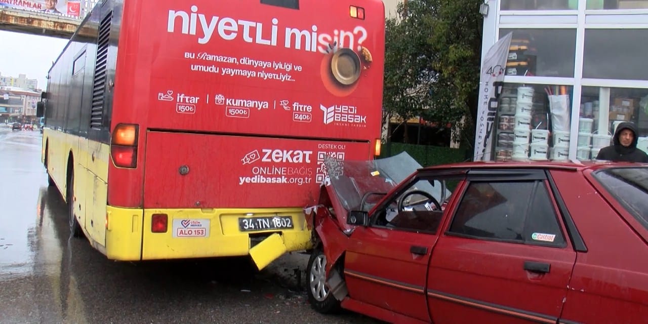 İstanbul Ümraniye'de bayramın birinci gününde etkili olan yağışlı havanın etkisiyle kayganlaşan yolda otomobil sürücüsü direksiyon hakimiyetini kaybetti. Kaygan yolda duramayan otomobil, durakta yolcu almak için bekleyen İETT otobüsüne arkadan çarptı. Kazada otomobil kullanılamaz hale gelirken, sürücü ise yaralandı. Yaralanan sürücü, ambulansla hastaneye kaldırıldı.
