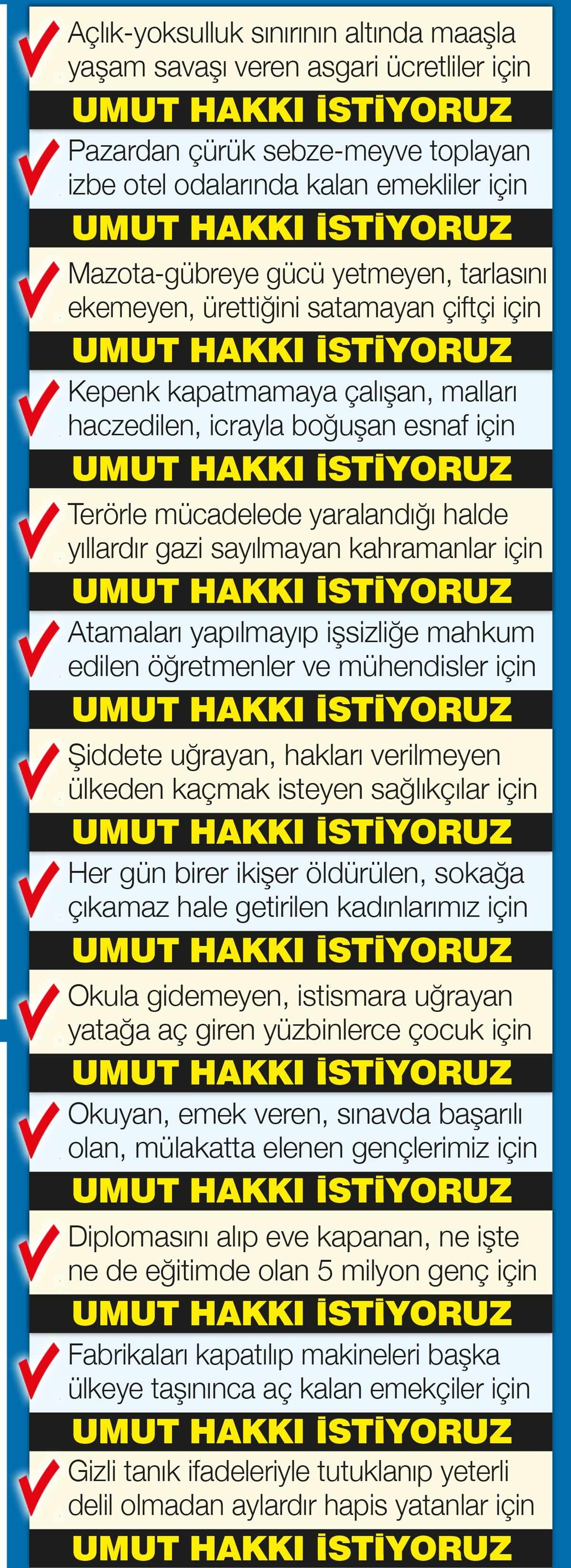 Umut hakkını teröriste değil vatandaşa tanıyın Sözcü Gazetesi