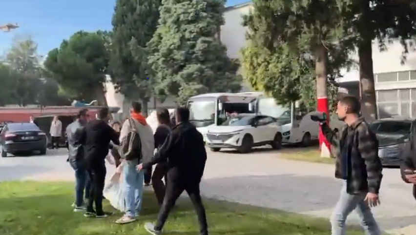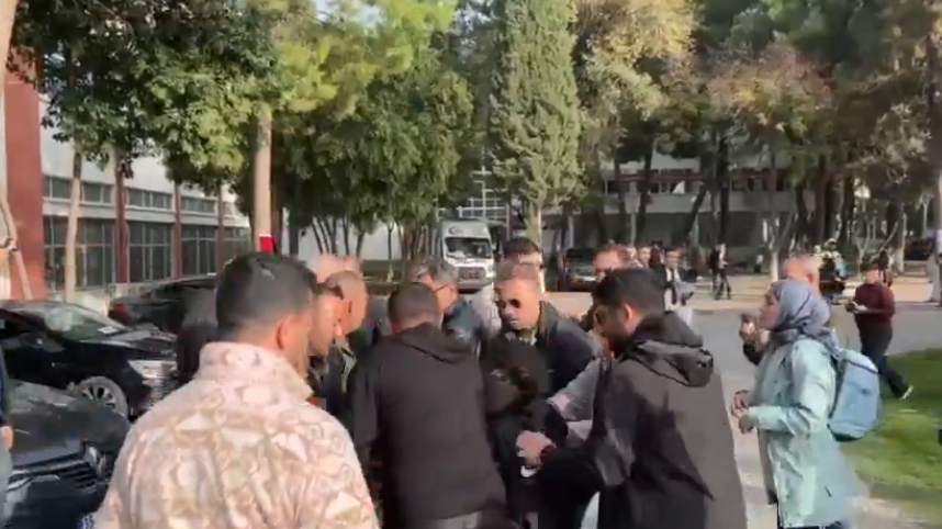 Sivili polis ve özel güvenlik öğrencilere müdahale etti. Çıkan arbedede 5 öğrenci yaka paça gözaltına alındı.