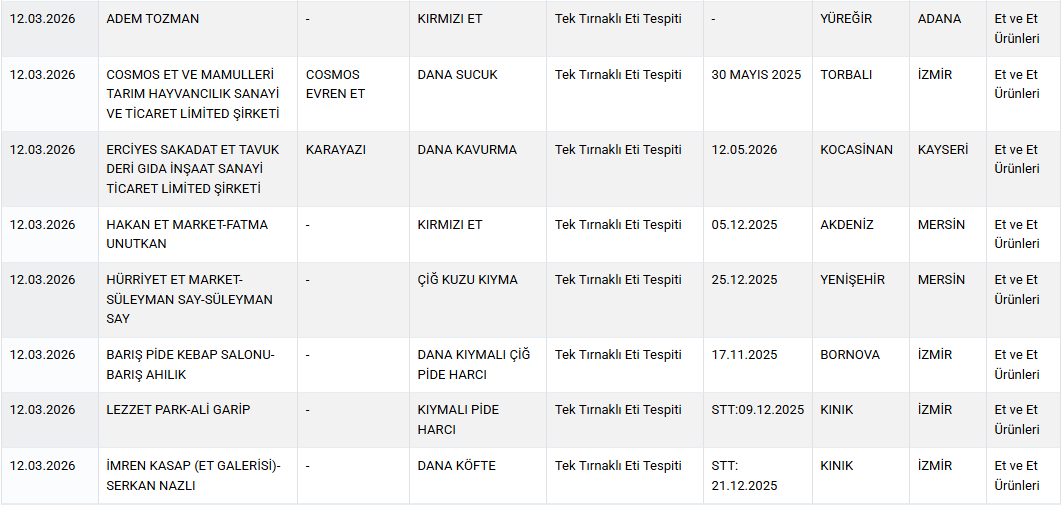 Tarım ve Orman Bakanlığı, halk sağlığını koruma amacıyla yürütülen çalışmalar çerçevesinde "guvenilirgida.tarimorman.gov.tr" adresindeki listeyi yeniledi ve 13 yeni ürünü "Sağlığı Tehlikeye Düşürecek Gıdalar" başlığı altına dahil etti.