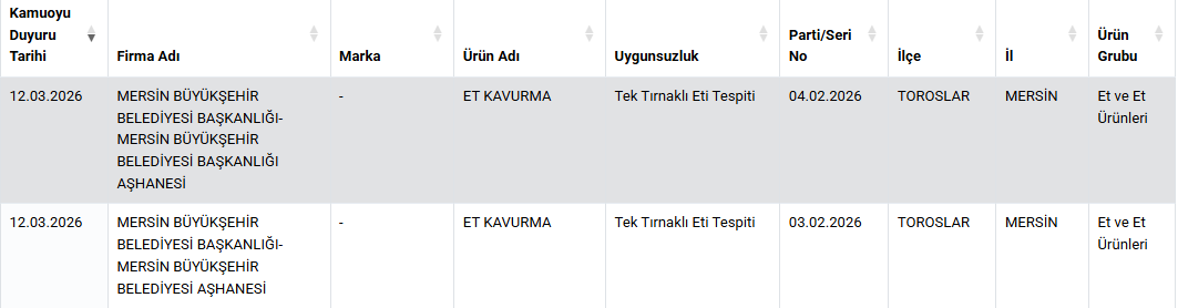 BELEDİYE'DEN TEK TIRNAKLI SKANDALITek tırnaklı eti kullanıldığı tespit edilen işletmeler arasında en çok dikkat çeken Mersin Büyük Şehir Belediyesi'nin aşhanesi oldu.