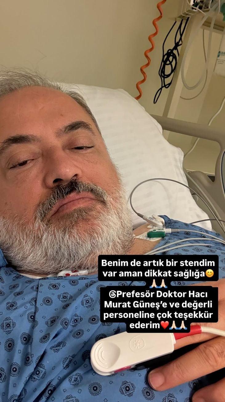 HASTANE ODASINDAN PAYLAŞIMDeniz Erdoğan, hastane odasından paylaştığı fotoğrafa "Artık benim de bir stentim var. Aman sağlığa" notunu düştü.
