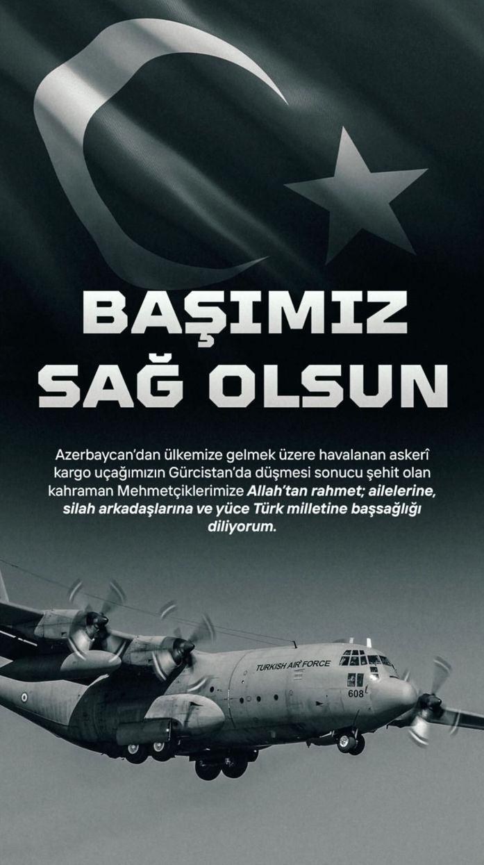 Milli Savunma Bakanlığı (MSB), Azerbaycan’dan Türkiye’ye gelmek üzere havalanan C130 tipi askeri kargo uçağının Gürcistan-Azerbaycan sınırında düştüğünü açıkladı. Bakanlık, arama ve kurtarma çalışmalarının sürdüğünü belirtti. İçişleri Bakanı Ali Yerlikaya uçağın enkazına ulaşıldığını duyurdu. Olayın ardından birçok ünlü isim de sosyal medya hesaplarından taziye mesajları paylaştı.