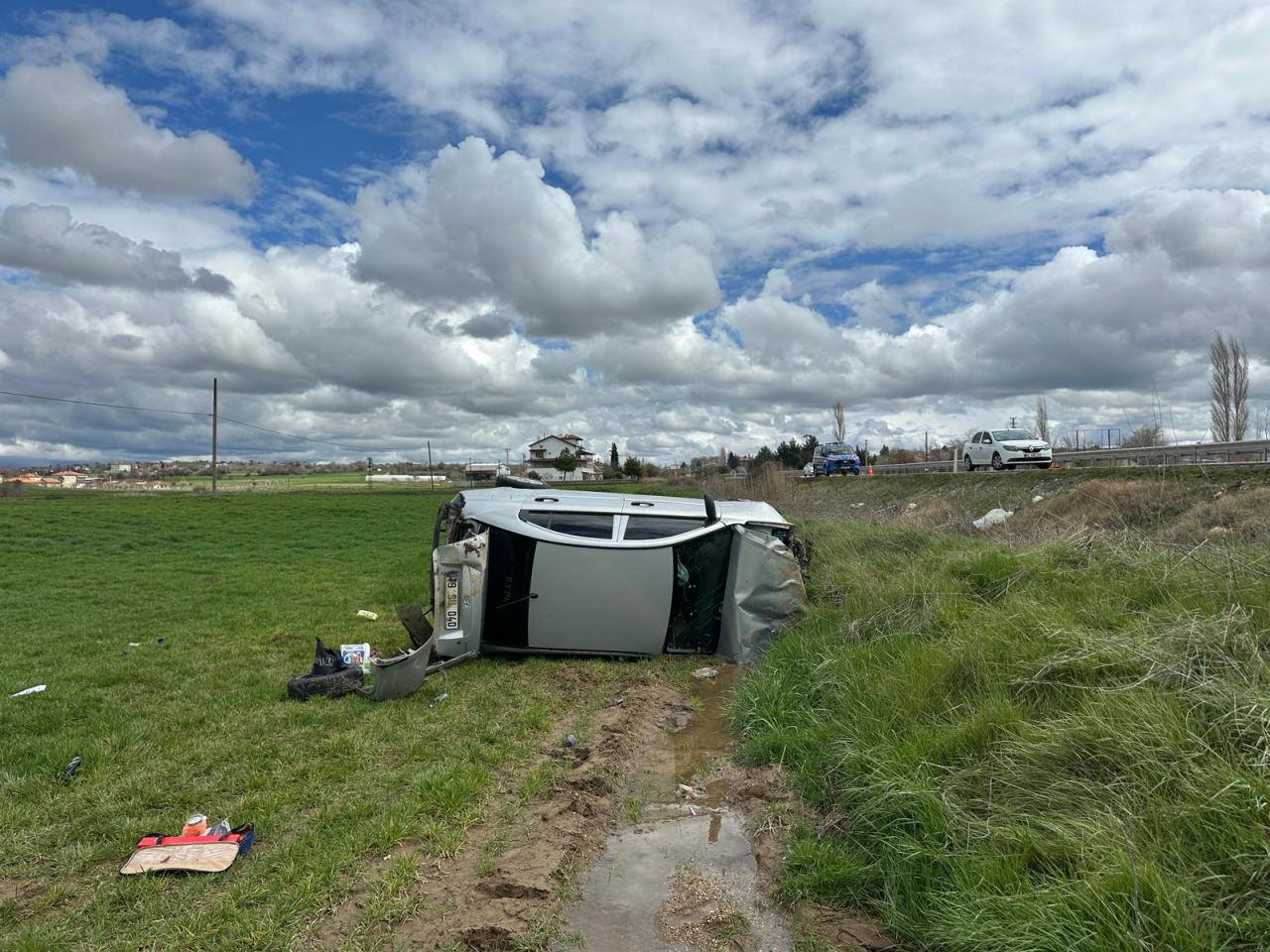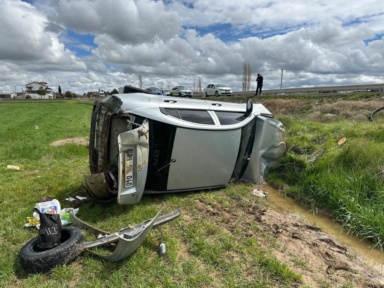Uşak ta feci kaza! Tarlaya devrilen otomobildeki 4 kişi yaralandı