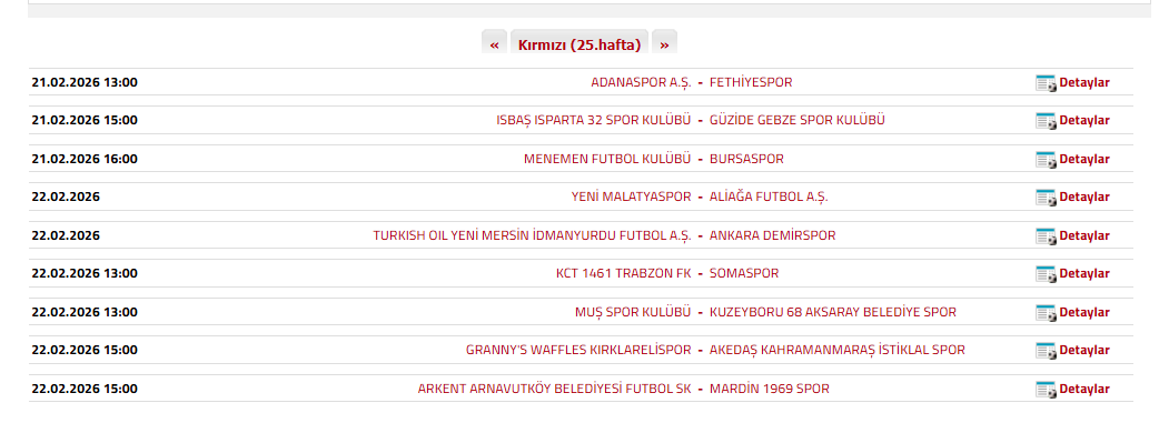 TFF 2. Lig Kırmızı Grup’un 25. haftasında planlanan Yeni Mersin İdmanyurdu - Ankara Demirspor maçı oynanmayacak.