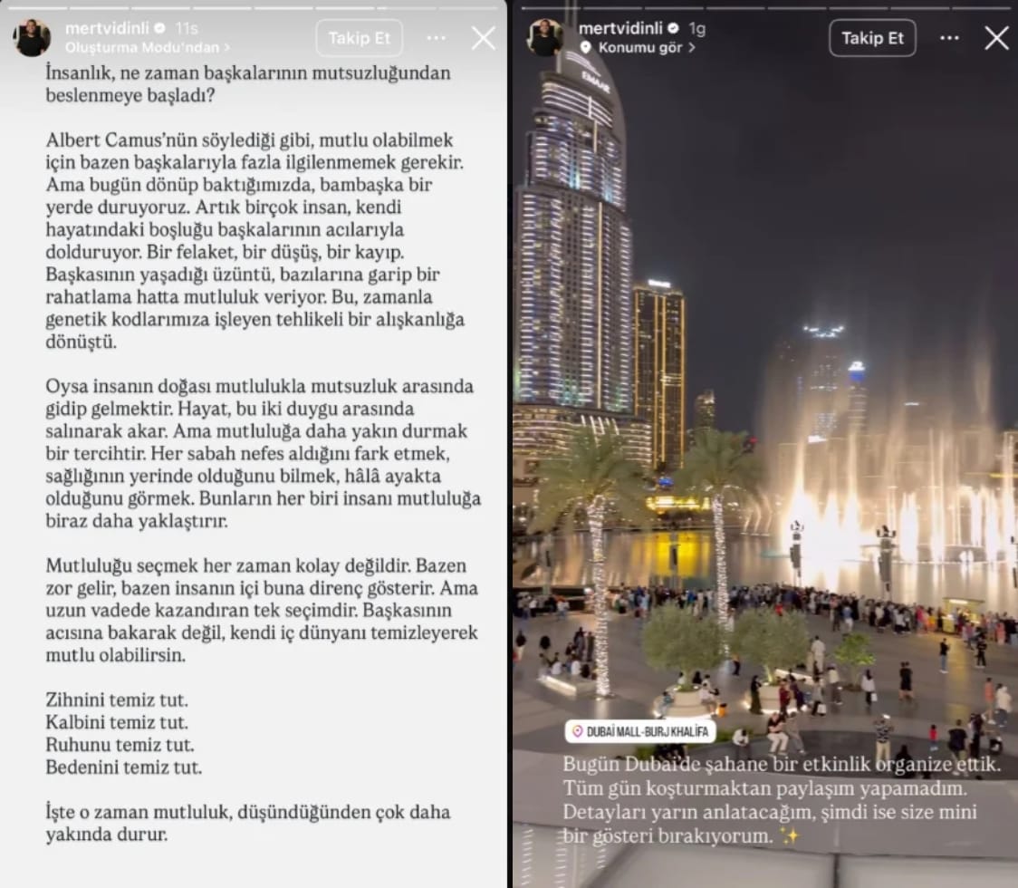 Yurt dışında olduğu belirlenen sosyal medya fenomeni Mert Vidinli Dubai'den bir paylaşımda bulundu.