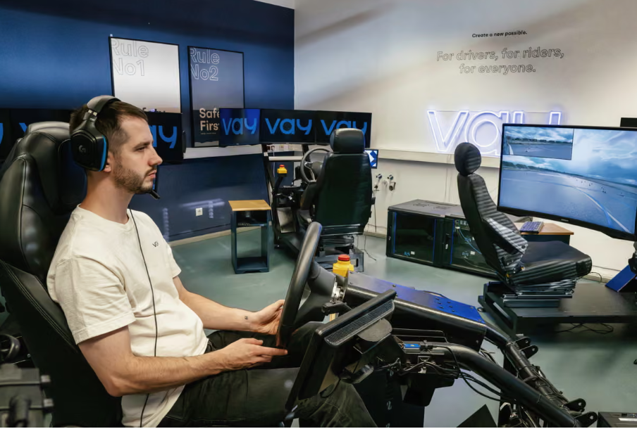 Bu, 2018 yılında kurulan ve uzaktan kumandalı araç teknolojisi geliştiren Berlin merkezli bir şirket olan Vay. San Francisco ve Şanghay'daki robot taksilerin aksine , Vay farklı bir hizmet sunuyor. Uzaktan sürücüler, müşteriye bir araba "teslim ediyor" ve müşteri aracı kendisi kullanıyor; park etme işini ise uzaktan sürücü üstleniyor.