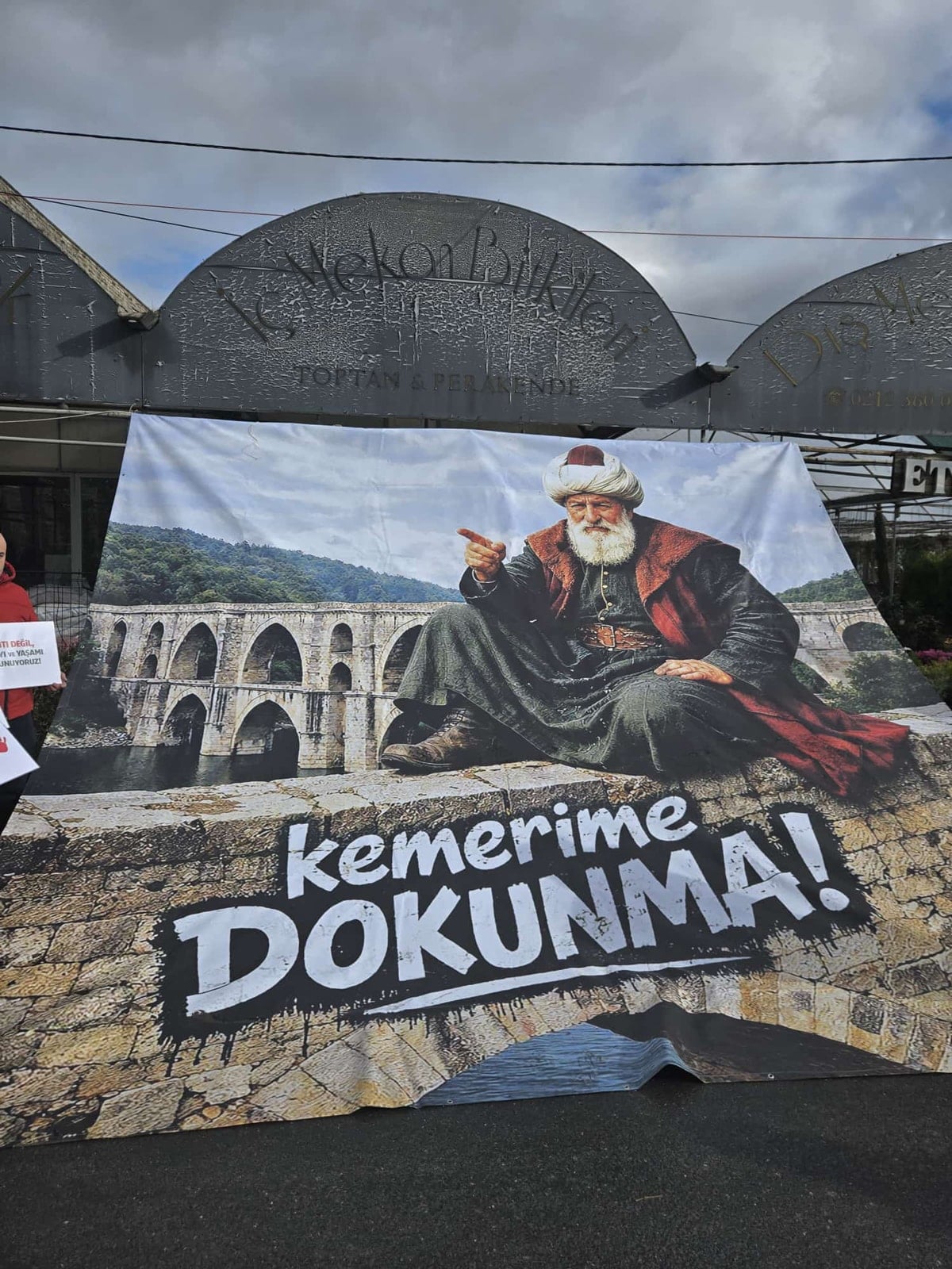 Atatürk büstünden tarihi kemere doğru yürüyen ve burada basın açıklaması yapan vatandaşlar, bölgedeki sulak alanların, tarım arazilerinin ve tarihi yapıların risk altında olduğunu ifade etti. Kalabalık grup, ‘Ormanıma, suyuma, toprağıma dokunma’ sloganları attı.