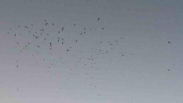 Van Gölü semalarında akşam saatlerinde etkileyici bir doğa manzarası yaşandı. Göl üzerinde toplanan kuş sürüsü, dairesel hareketlerle uzun süre havada süzülerek adeta görsel bir şölen sundu.
