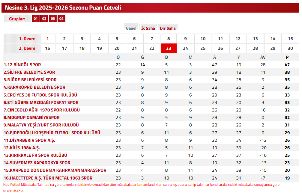 ZİRVEYLE FARK AZALDILigin bitimine 7 hafta kala Malatya Yeşilyurt Spor Kulübü’nün liderle arasındaki puan farkı 16’ya, ikinci sıradaki takımla ise 7 puana kadar düştü. Bu tablo, play-off hattı için umutları güçlendirdi.