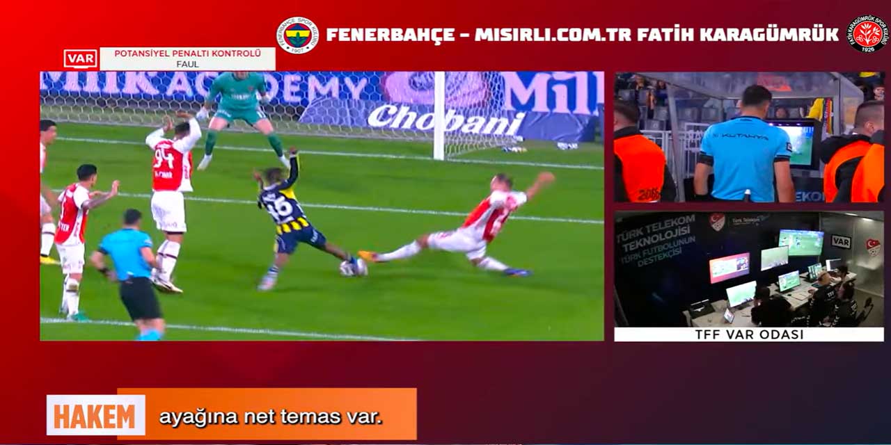 FENERBAHÇE'YE VERİLEN PENALTIFenerbahçe – Fatih Karagümrük maçında ise hakem Ali Şansalan, Nene’nin ceza sahasında yerde kaldığı pozisyonda Balkovec’in kontrolsüz bir şekilde müdahale ettiğini söylediği gösterildi.