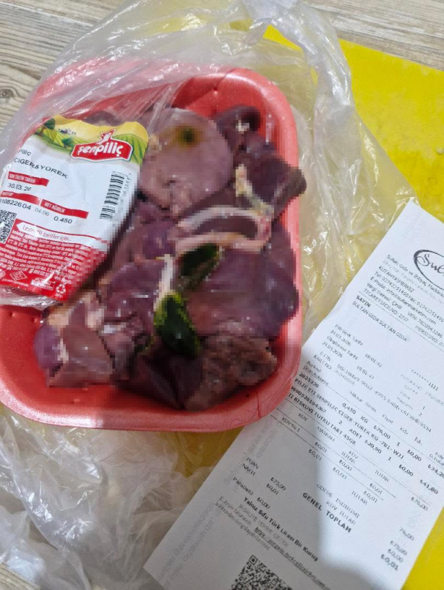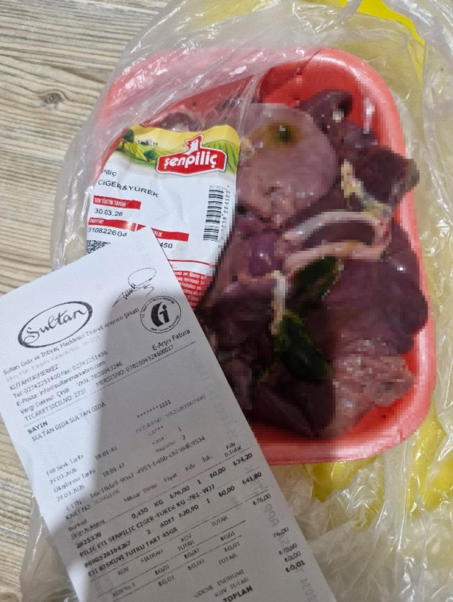 Kütahya'da birçok şubesi olan "Sultan" marketten tavuk ciğeri aldığını öne süren bir vatandaş, paketi açtığında korkunç bir manzarayla karşılaştı. Alışveriş fişini de paylaşan vatandaş, Tarım ve Orman Bakanlığı'nı etiketleyerek "Bu ürünler hangi şartlarda üretiliyor?" sorusunu yöneltti.