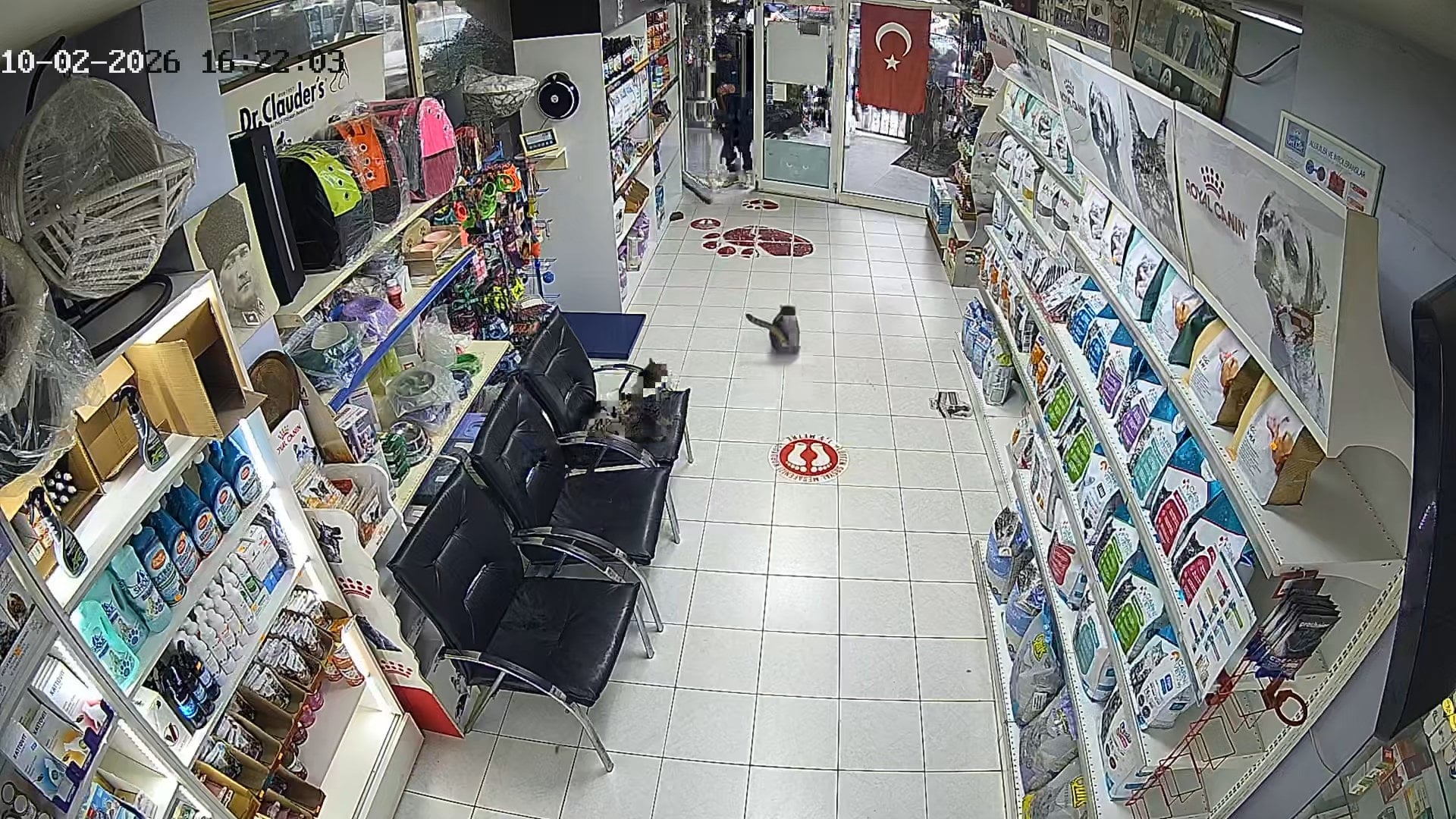Torpilin kapalı alanda şiddetli bir gürültüyle patlaması, klinikteki dilsiz dostlarımızı dehşete düşürdü. Görüntülerde, tedavi sırasını bekleyen bir kedinin can havliyle sağa sola kaçıştığı ve saklanacak yer aradığı görülüyor. Patlama sesiyle irkilen klinik personeli ise kısa süreli şokun ardından hayvanları korumaya çalıştı.
