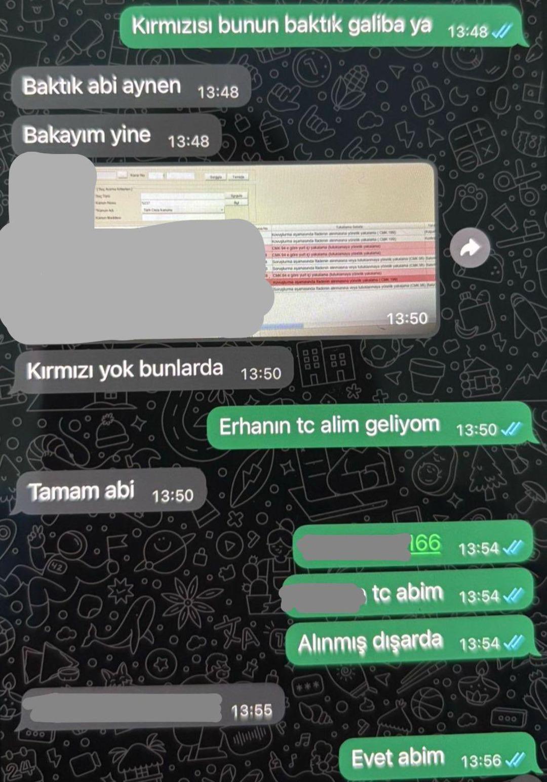 Operasyon dosyasına giren mesajlarda, örgüt üyelerinin kamu görevlilerine çeşitli isimler üzerinden sorgu yaptırdığı görüldü. Paylaşılan ekran görüntülerinde “Buna bi baktır abi arantısı var mı yok mu sana zahmet”, “bi aranmasına bakarmısın” ve “Erhan’ın TC alım geliyom” gibi ifadeler dikkat çekti. Bir başka mesajda ise karşı tarafın “Temiz abi” ve “Kırmızı yok bunlarda” şeklinde yanıt verdiği görüldü. Yazışmalardan bazılarını CNN Türk muhabiri Merve Tokaz paylaştı.