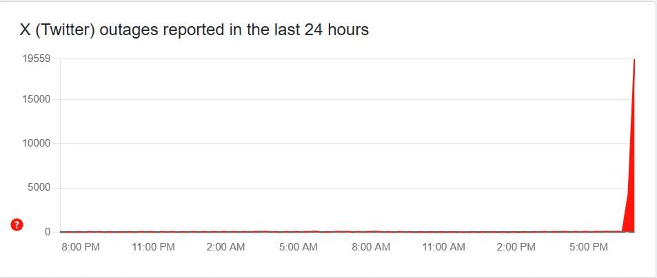 Downdedector'da yer alan bilgiye göre bir saat içerisinde 19 bin 553 kullanıcının X'e erişim sorunu yaşadığına dair rapor verdi.