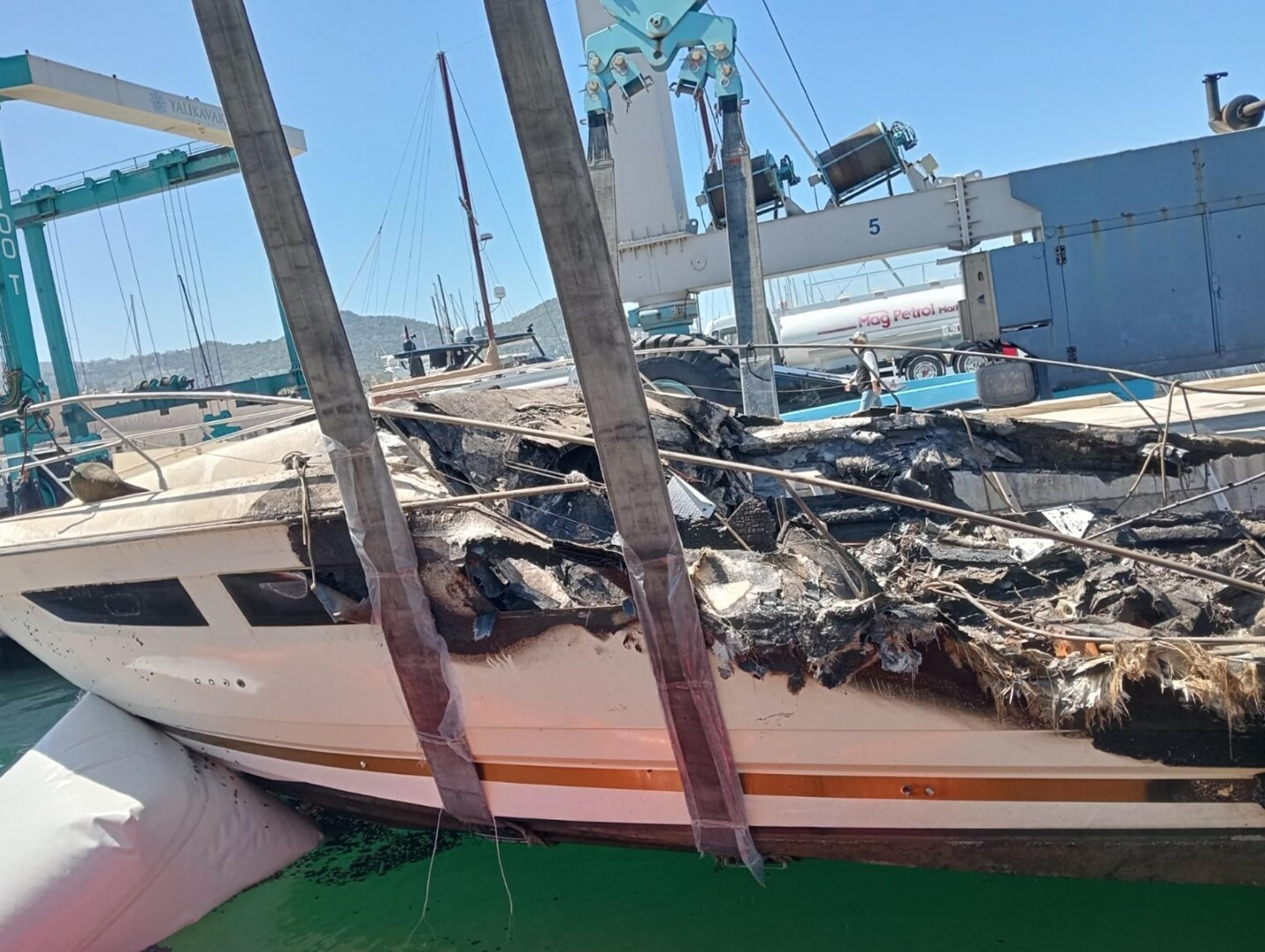 Yalıkavak ta cayır cayır yanan milyonluk yatların enkazı kaldırıldı!