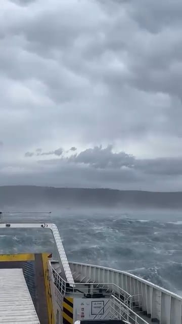 Fırtına nedeni ile seferini sürdüremeyen ve içerisinde onlarca yolcu ve aracın olduğu gemiden çekilen görüntüler sosyal medyada izleyenlenleri de tedirgin etti.