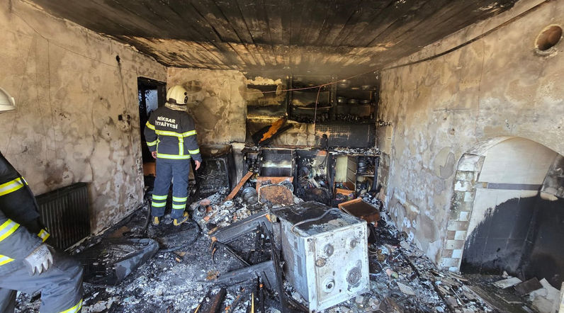 İhbar üzerine adrese sevk edilen itfaiye ekipleri, yangına müdahale ederken; içeride bir kişinin olduğu bilgisini aldı.