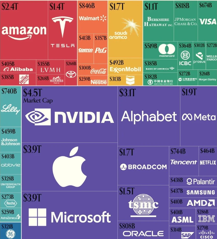 DÜNYANIN EN DEĞERLİ 50 ŞİRKETİNvidia'nın 4,5 trilyon dolara yükselişi