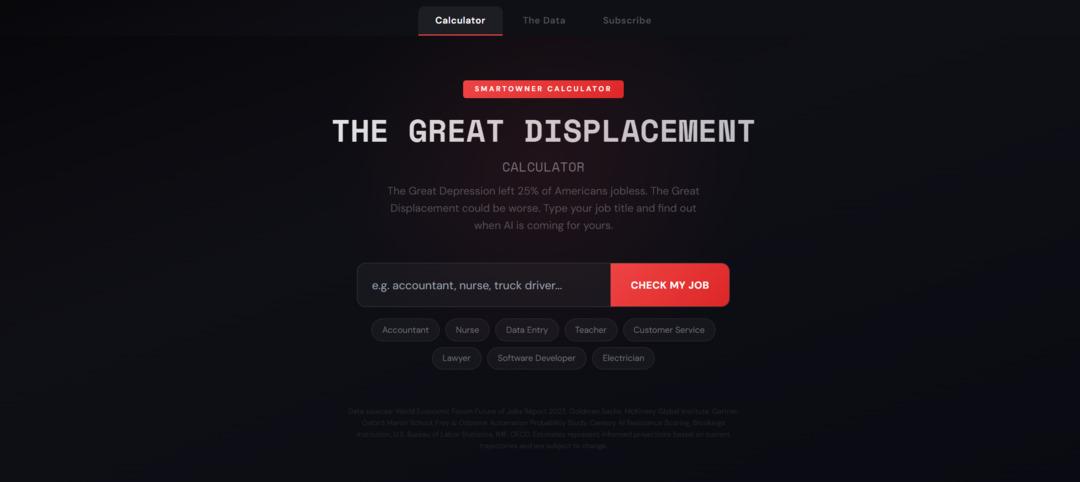 YAPAY ZEKANIN MESLEĞİNİZİ ELİNİZDEN ALACAĞI TARİHİ HESAPLAYAN SİTETheGreatDisplacement.ai adlı internet sitesi herkesin erişimine açık. Kullanıcılar, platforma sadece iş unvanlarını girerek mesleklerine yönelik otomasyon riskini, öngörülen işlerini kaybetme (yer değiştirme) yılını ve yapay zeka çağında önde kalabilmek için atmaları gereken adımları içeren bir eylem planını görebiliyorlar.