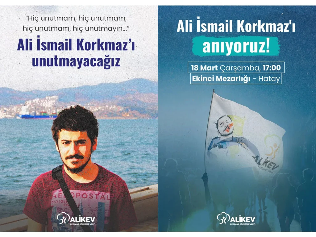 DÜŞLERİNDE ÖZGÜR DÜNYA: ALİ İSMAİL 32 YAŞINDA!Ali İsmail Korkmaz Vakfı (ALİKEV), yaptığı açıklamada, bugün saat 17.00’de Antakya Ekinci Mezarlığı’nda anma gerçekleştirileceğini duyurdu. Vakıf, “Ali İsmail Korkmaz’ı doğum gününde sevgiyle ve özlemle anıyoruz. Mezarı başında buluşarak adını ve hatırasını birlikte yaşatıyoruz” ifadelerine yer verdi.