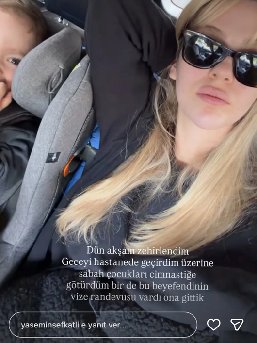 HASTANELİK OLDUPaylaştığı görüntüde yorgun hali dikkat çeken Şefkatli, geceyi hastanede geçirdiğini açıkladı. Ünlü isim, Instagram hikâyesine "Dün akşam zehirlendim. Geceyi hastanede geçirdim. Üzerine sabah çocukları cimnastiğe götürdüm, bir de bu beyefendinin vize randevusu vardı ona gittik." notunu düştü.