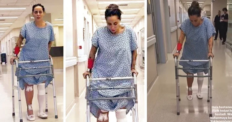 “Hâlâ hastanedeyim. Fizik tedavi başladı. Walker (hasta yürüteci) kullanmaya başladım. Çok ciddi ödem ve hissizlik var. Ağrı kesiciler olmazsa ağrıdan baygınlık geçirecek kadar canım yanıyor. Ama inadımdan direniyorum. En kısa zamanda toparlayacağım inşallah.”