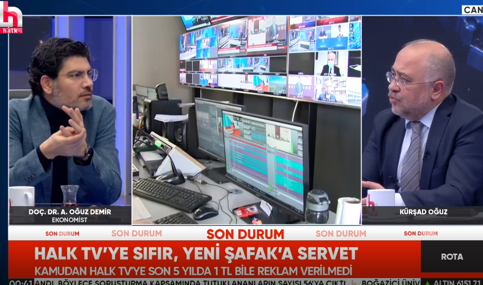 Dün akşam Kürşad Oğuz'un sunduğu ROTA programına katılan iktisatçı Prof. Dr. Oğuz Demir, kamu kurumlarının bu uygulamasındaki tutarsızlığı ele aldı. Bir şirketin veya kurumun medya organlarına reklam vermesindeki amacın ürününün ya da hizmetinin daha fazla duyurulması olduğu hatırlatan Demir, Halk TV'nin reytinglerde birinci çıkmasına rağmen reklam almamasının nedeninin siyasi saikler ile açıklanabileceğini belirtti.