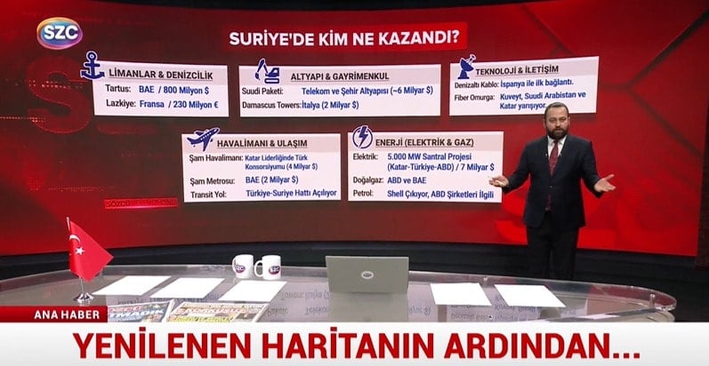SÖZCÜ TV Genel Müdürü Güney Öztürk ise Sözcü Gazetesi'nde yayınlanacak yazısında Suriye'deki yeni yatırımlarla birlikte ülkenin Akdeniz kıyılarına yapılacak yeni yatırımları da anlattı