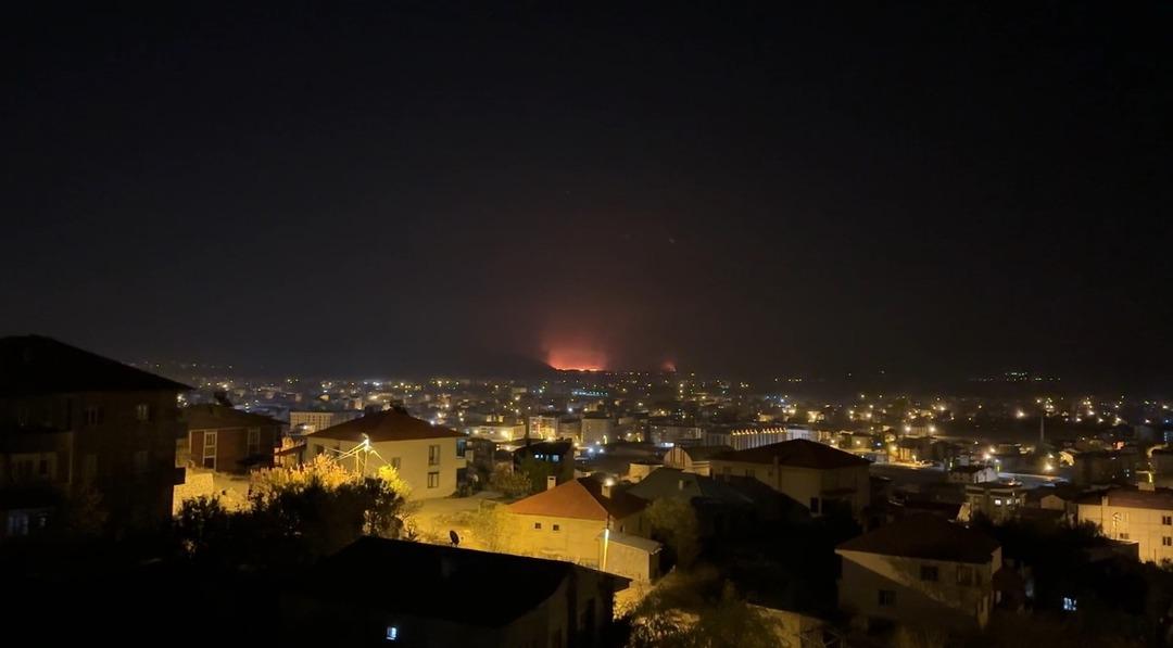 Ekipler, zorlu arazi şartlarına rağmen söndürme çalışmalarını sürdürüyor.