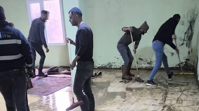 Sel sularının hızla yükselmesiyle birlikte caminin hem alt hem de üst katı tamamen doldu.