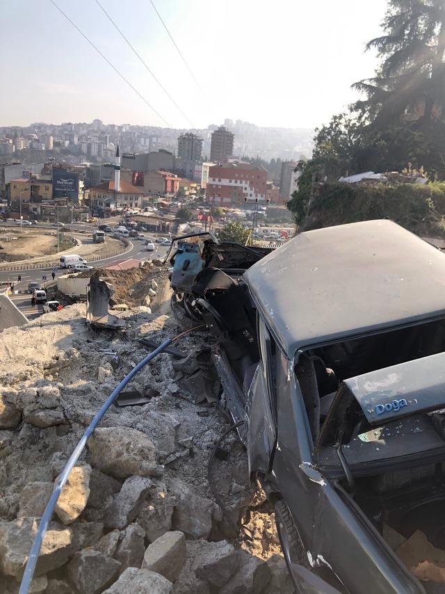Yer: Trabzon! Park halindeki kamyon hareket etti, 3 araca çarpıp devrildi