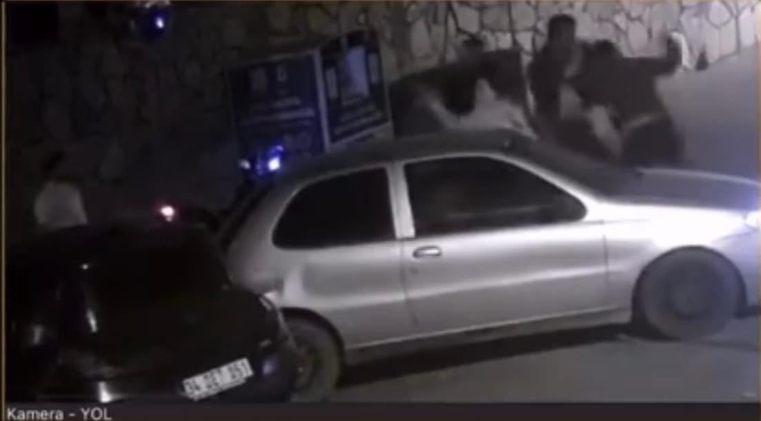 Otomobili hasar gören sürücü çarpan otomobilin sürücüsünü dışarı çıkardı ve yumruklayarak darbetti. Taraflar arasındaki kavga cep telefonu kamerasıyla kaydedilirken olay güvenlik kamerasına da yansıdı.