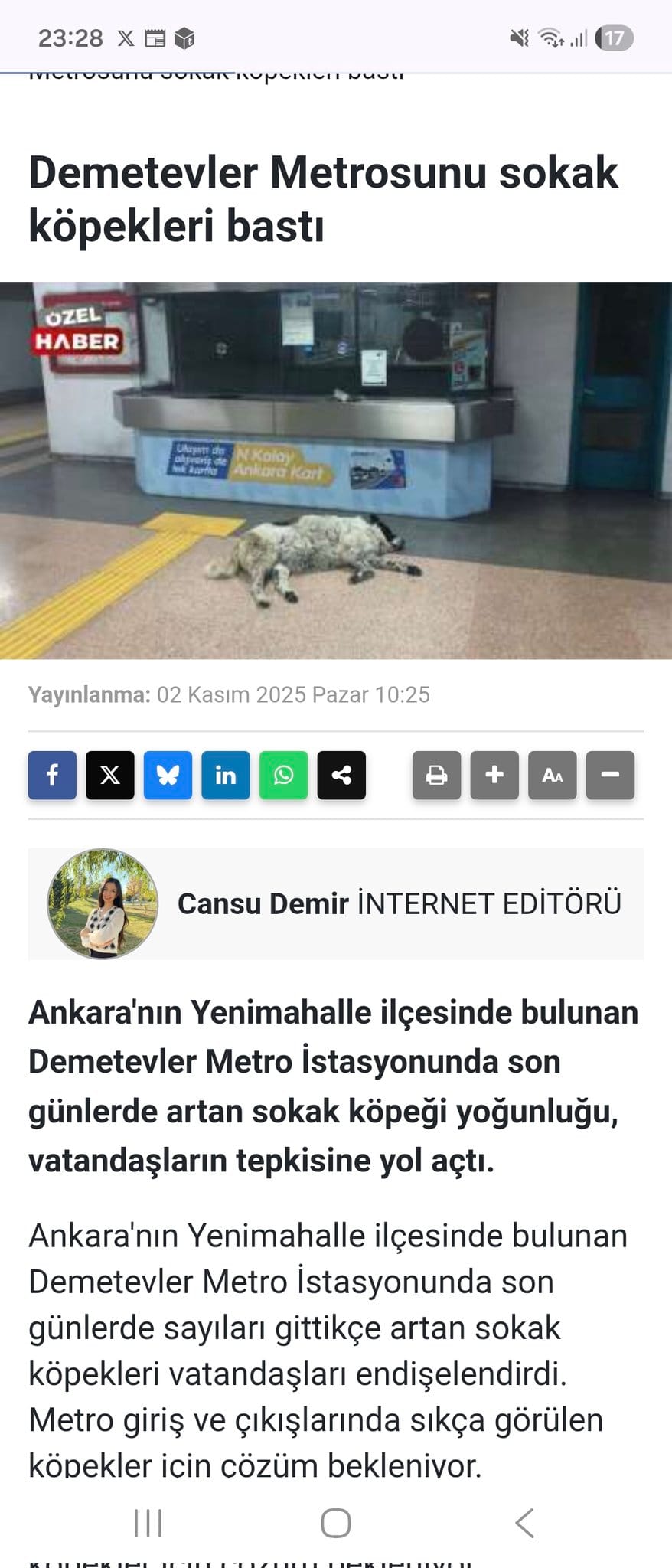 Söz konusu haberde, “Ankara’nın Yenimahalle ilçesinde bulunan Demetevler metro istasyonunda, son günlerde artan sokak köpeği yoğunluğu vatandaşların tepkisine yol açtı. Metro giriş ve çıkışlarında sıkça görülen köpekler için çözüm bekleniyor” ifadeleri kullanılarak sokak köpeklerinin hedef gösterildiği görüldü.