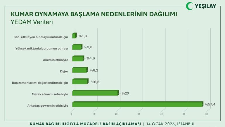 Türkiye Yeşilay Cemiyeti, sanal kumarın yaygınlaşmasına dikkat çekmek ve kumar bağımlılığına ilişkin 2025 yılı verileri ile çözüm önerilerini kamuoyuyla paylaşmak amacıyla bir basın toplantısı düzenledi. Türkiye Yeşilay Cemiyeti Genel Merkezi'nde düzenlenen toplantıda Yeşilay Genel Başkanı Doç. Dr. Mehmet Dinç konuştu.
