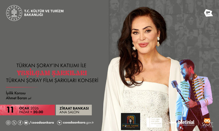 Yeşilçam Şarkıları – Türkan Şoray Film Şarkıları Konseri, 11 Ocak 2026 Pazar günü saat 20.00’de CSO Ada Ankara Ziraat Bankası Ana Salon’da sanatseverlerle buluşacak.