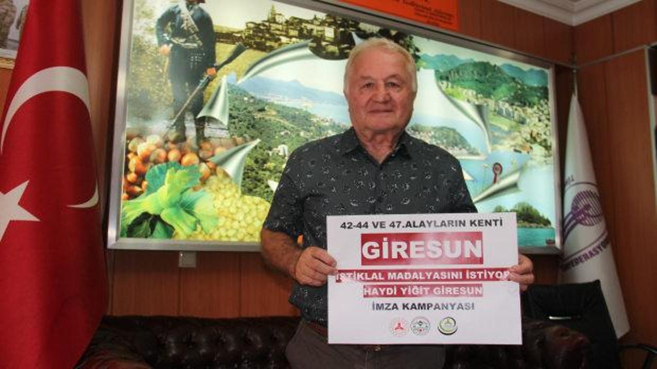 "200 BİNİN ÜZERİNDE İMZAYA ULAŞTIK"Yaklaşık 50 gün önce başlatılan kampanyada, bugüne kadar 200 bini aşkın imza toplandığı bildirildi. GESOB Başkanı Ali Kara, Giresun'un toplam nüfusunun 450 bin, seçmen sayısının ise yaklaşık 350 bin olduğunu hatırlatarak "Toplanan imzalar, halkımızın bu konuya gösterdiği yüksek katılımı ve sahiplenmeyi açıkça ortaya koymaktadır. İstiklal madalyamızın ve ‘Yiğit Giresun' unvanının şehrimize verilmesi için yürüttüğümüz çalışmalar hem Giresun'da hem de gurbette yaşayan hemşehrilerimizden büyük destek gördü. Yaşlılar ve imza veremeyecek durumda olanları dışarıda bıraktığımızda 200 binin üzerinde imzaya ulaştık. Bu da yüzde 70-80 oranında güçlü bir destek anlamına geliyor. Çalışmalarımız, aynı zamanda Giresun'un Milli Mücadele tarihine ilişkin belge ve tanıklıkların derlenmesiyle paralel şekilde yürütülüyor" ifadelerini kullandı.