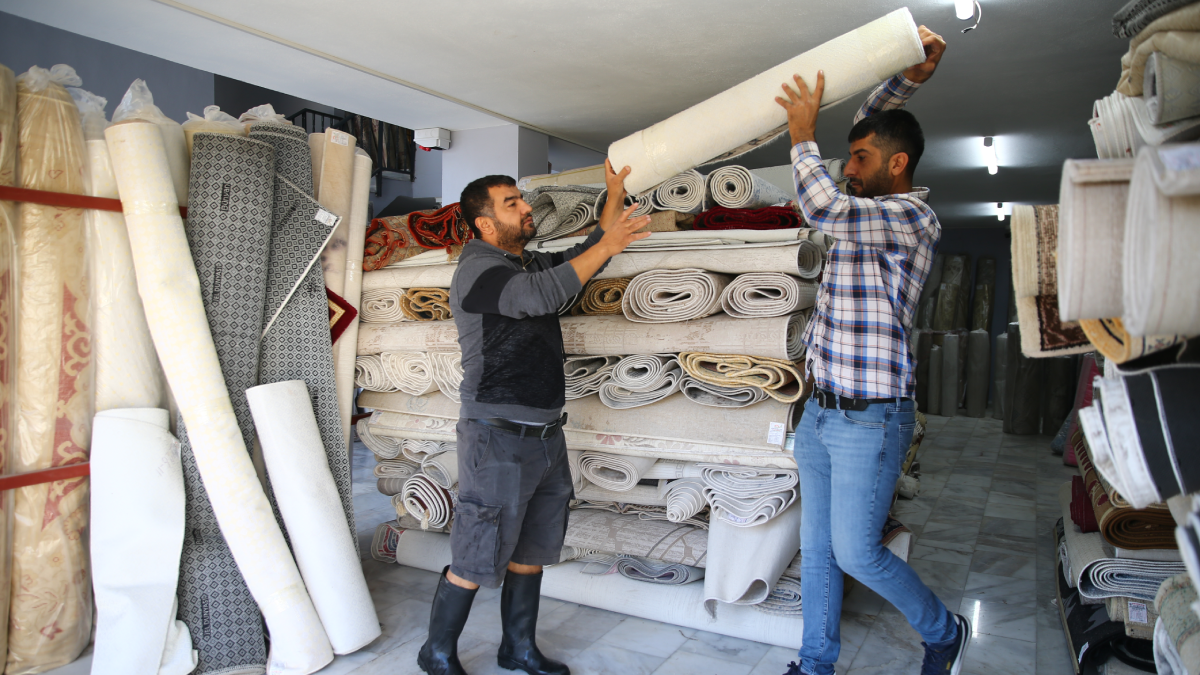 Başka bir adrese halı almak için hareket eden Erkek, aracının arkasını açtığında halılardan birinin içinde cüzdan olduğunu fark etti.