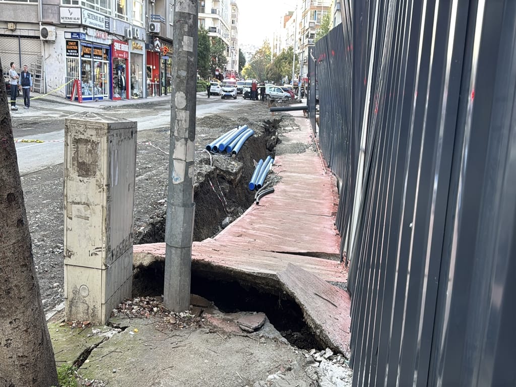 Çökmenin gözle görüldüğü bölgeye sevk edilen ekipler, çevrede inceleme yapıp olası tehlikeye karşı caddeyi araç trafiğine kapattı.