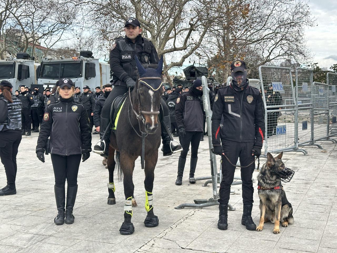 Tedbirler kapsamında Taksim İstiklal Caddesi'ne çıkan sokaklar polis ekipleri tarafından kapatıldı. Caddeye giren kişilere üst araması yapılırken, yaya olarak yapılan denetimlere atlı polisler de eşlik ediyor.