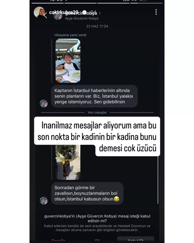 “BİR KADININ BİR KADINA BUNU DEMESİ ÜZÜCÜ”Sosyal medya üzerinden açıklama yapan Çakır, özellikle bir kadından gelen mesajın kendisini derinden etkilediğini belirterek, “İnanılmaz mesajlar alıyorum ama bu son nokta. Bir kadının bir kadına bunu demesi çok üzücü” ifadelerini kullandı. Paylaşım kısa sürede sosyal medyada gündem olurken, çok sayıda kullanıcıdan destek mesajları geldi.