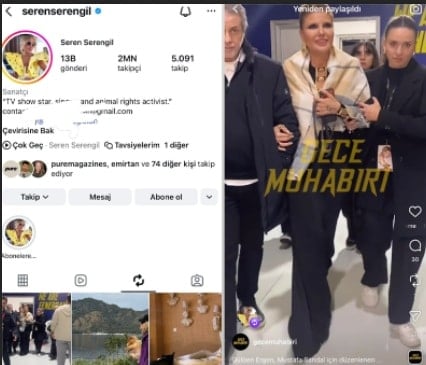 ERGEN'İ KENDİ PROFİLİNDE PAYLAŞTISerengil, Ergen’in Saygı1 gecesindeki röportaj görüntülerini kendi profilinde paylaştı. Sosyal medya kullanıcıları bu hareketi “Seren’in eli çarpmıştır” yorumlarıyla gündeme taşıdı. Ancak kısa süre sonra paylaşım geri çekildi.