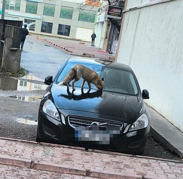 Sahabiye mahallesinde görüntülenen tilkinin araç üzerinde yiyecek aradığı anlar kameralara yansıdı. Araç seslerine ve insan hareketlerine karşı temkinli davranan tilki, zaman zaman hızla uzaklaşırken, sonrasında tekrardan bölgeye geldiği görülüyor.