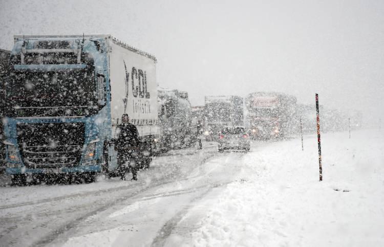 Kars-Erzurum kara yolunda kar yağışı nedeniyle bazı tırlar yolda kaldı. İşte haberin detayları...