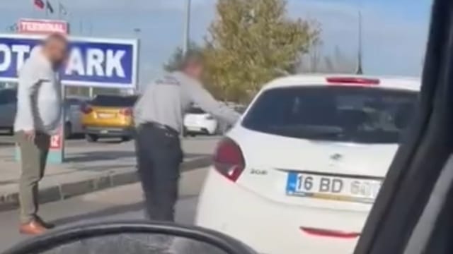 "İN AŞAĞI" DİYE BAĞIRIP CAMI YUMRUKLADIİddiaya göre 16 BD 688 plakalı otomobilin sürücüsü, tartıştığı aracın önüne manevra yaparak yolu kesti. Aracından inen öfkeli sürücü, diğer aracın şoför mahalline gelerek cama vurmaya başladı. Sürücüye "İn aşağı" diye bağıran ve ağır hakaretlerde bulunan şahsı, yanında bulunan kişi ve çevredeki bir güvenlik görevlisi güçlükle sakinleştirmeye çalıştı.