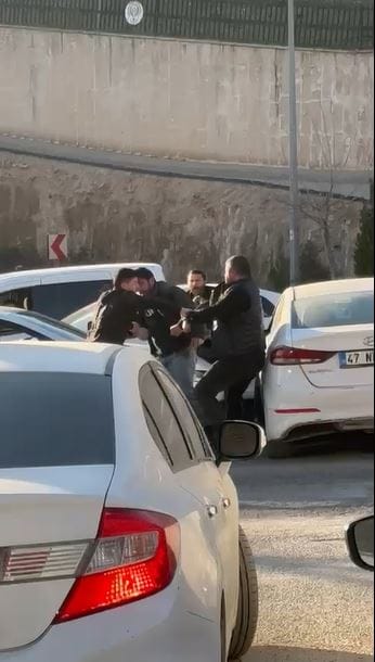 Mardin’in Artuklu ilçesinde trafikte ‘yol verme’ meselesi yüzünden çıkan, tarafların birbirine tekme ve yumrukla saldırdığı kavga; çevredeki vatandaşların cep telefonu kameralarına yansıdı.